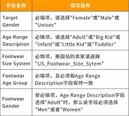 亚马逊美国站将在2019年8月30日正式开始使用新鞋码属性(footwear_size attribute),包括了鞋类尺寸、宽度、性别和年龄组相关的信息,届时Size Name这一属性将被撤销。相关卖家已经在近期收到了提醒邮件(邮件标题为:Reminder- Shoe Size Requirement for Selling Shoes),要求在8月30日前填写所有鞋靴商品的新鞋类属性,以避免商品受到抑制。