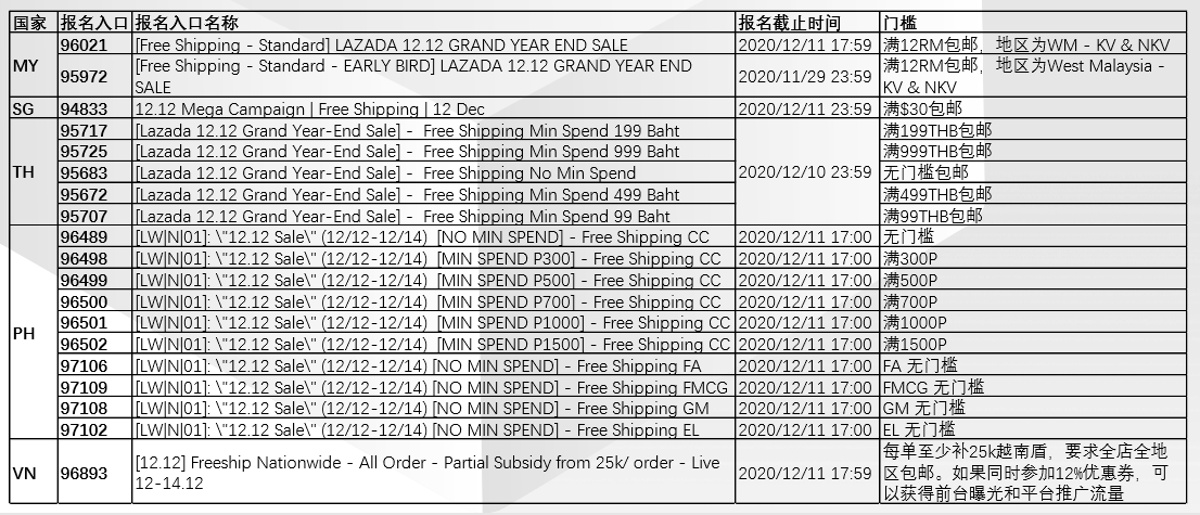 Lazada双12大促重点玩法:营销工具之包邮
