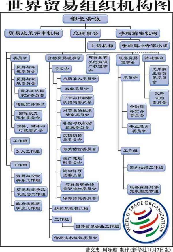 如今世贸组织与世界银行、国际货币基金组织一起并称为当今世界经济体制的“三大支柱”。