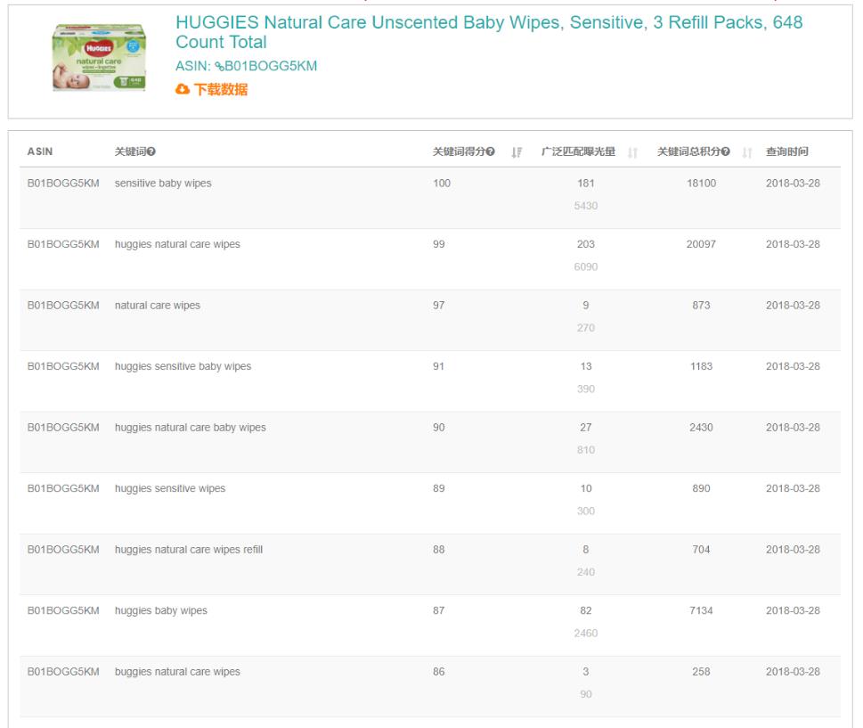 从上图我们可以看出系统推荐出来的关键词都是相关性非常高或者打CPC广告的关键词,我们可以使用该功能查询竞品或者自己产品的CPC关键词,从而进行优化增加产品曝光。