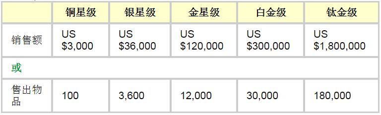 2、过去12个月完成100笔交易,达到US$3000销售额。
