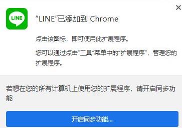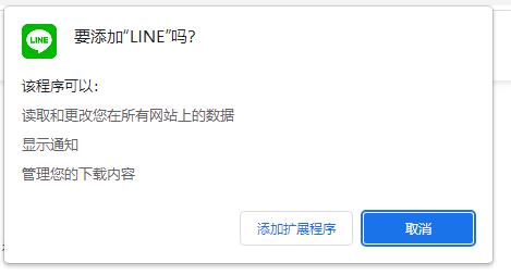 此时,在系统弹出的对话框中,点击”添加扩展程序“,然后,你会收到”“LINE”已添加到Chrome’的弹窗提醒(这里需要等待一下)。